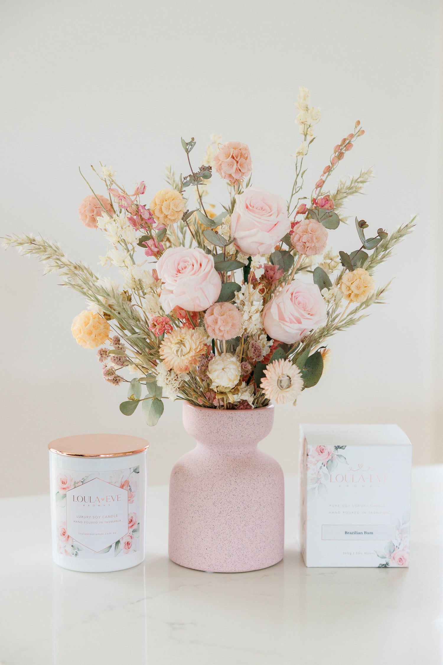 All our candles are hand poured in small batches with a high quality soy wax, premium fragrance oils and clean burning cotton wicks. All candles are presented in a lovely white gloss glass vessel, with a rose gold lid and housed in our beautiful custom packaging.